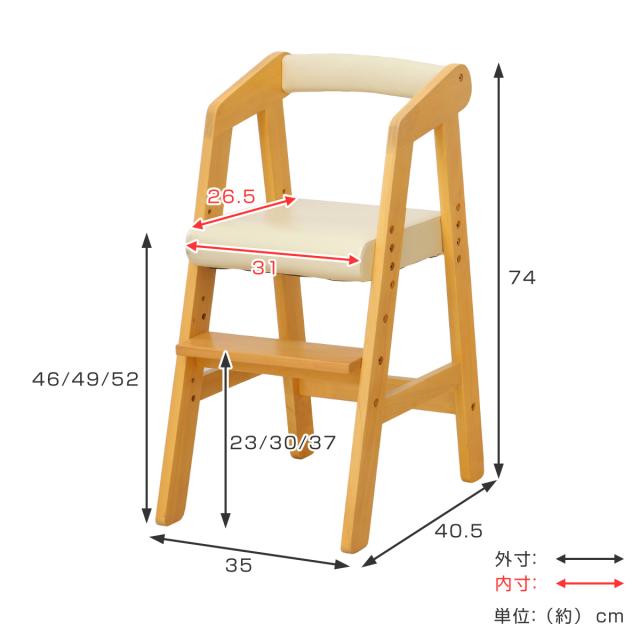 | サイズ | 約 幅35×奥行40.5×高さ74(cm) 【3段階調節可能】 座面の高さ:46・49・52(cm) 足置きの高さ:23・30・37(cm) |
