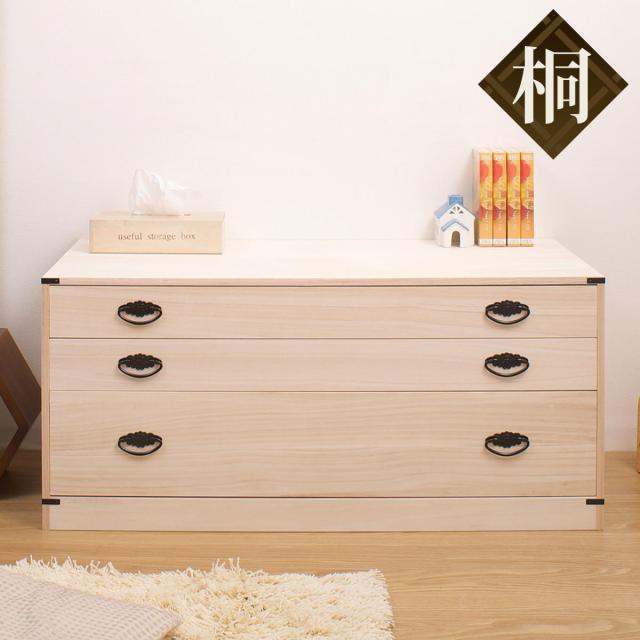桐たんす 着物用 浅型 3段 桐タンス 台輪あり 日本製 幅99cm ( 桐箪笥 収納 桐チェスト 国産 完成品 桐 たんす タンス 箪笥 積み重ね 桐衣装箱 着物収納 衣類収納 チェスト 天然木 )