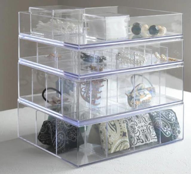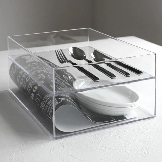 《 LH1576 DESCO 脚付き アクリル風 カトラリー 積み重ね 文箱 文具 化粧品 メイク コスメ 小物 飾る ディスプレイ 収納ボックス ボックス デスク周り 整理整頓 整理 整頓 片付け 幅32 奥行25 高さ8 高さ9 cm センチ コレクション ケース 》