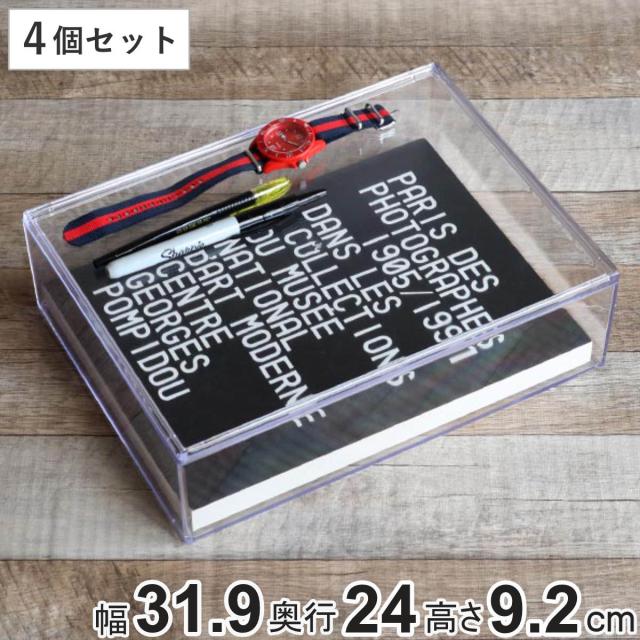 クリアケース 書類 フタなし A4対応 書類整理 収納 トレー 小物ケース 透明 デスコシリーズ 深型 4個セット ( 幅31.9×奥行24×高さ8.5cm 小物入れ デスク 蓋なし ふたなし 収納ケース スタッキング 日本製 卓上収納 )