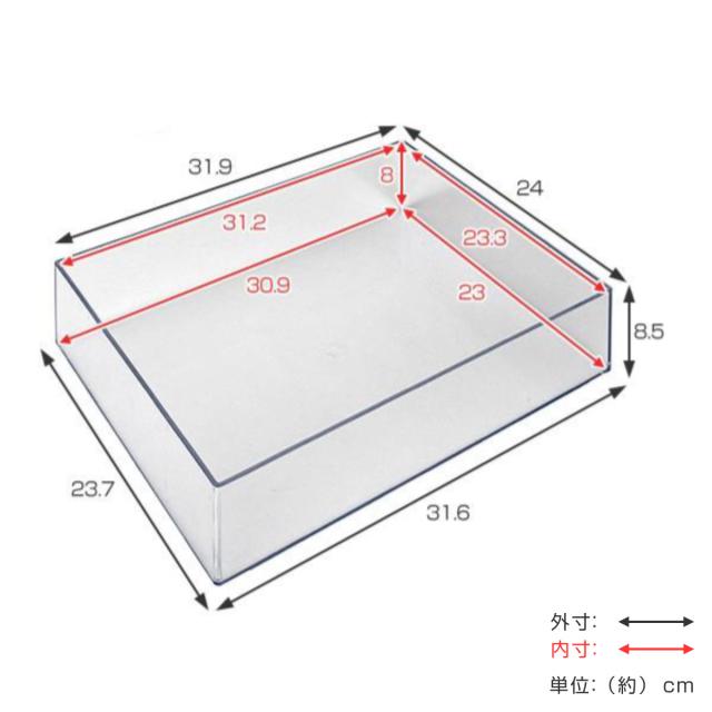 | サイズ | 外寸:約 幅31.9×奥行24×高さ8.5(cm) 内寸:約 幅30.9×奥行23×高さ8(cm) |