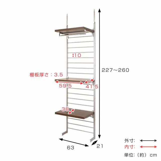 | サイズ | 本体:(約)幅63×奥行41.5×高さ227〜260cm、棚板:(約)幅59.5×奥行38×厚み3.5cm |