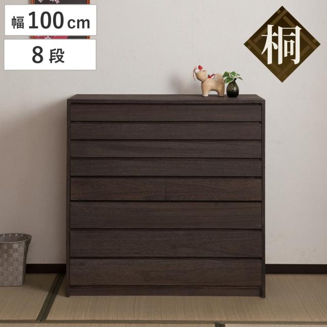 モダン桐タンス 8段 桐チェスト 焼桐仕上げ 幅100cm ( 桐たんす タンス チェスト 桐 着物 ケース 収納 洋服タンス 衣装ケース 桐箪笥 着物収納 日本製 完成品 引き出し )