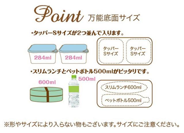 ●弁当箱・カトラリー・ペットボトルがすっきりおさまる大きさです。