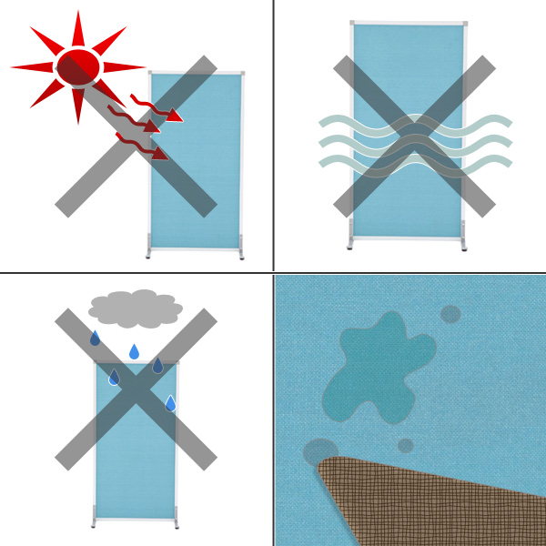 クロス張り、フェルトタイプのスクリーンをご使用の際は変形・変色・腐食防止のため以下の点にご注意ください。