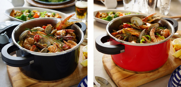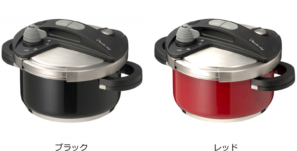 パッと目を引くレッドカラー、モダンシックなブラック、という2色のオシャレなデザインの圧力鍋が登場しました。調理後にそのままテーブルに置くと食卓も華やぎます。