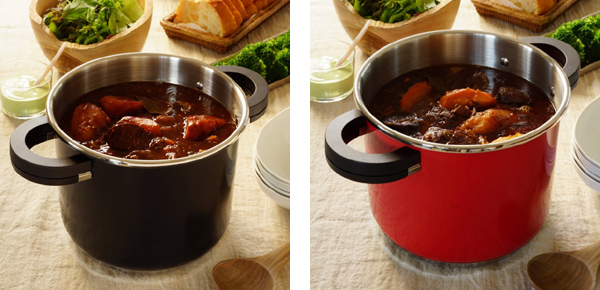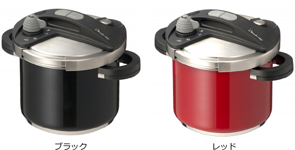 パッと目を引くレッドカラー、モダンシックなブラック、という2色のオシャレなデザインの圧力鍋が登場しました。調理後にそのままテーブルに置くと食卓も華やぎます。