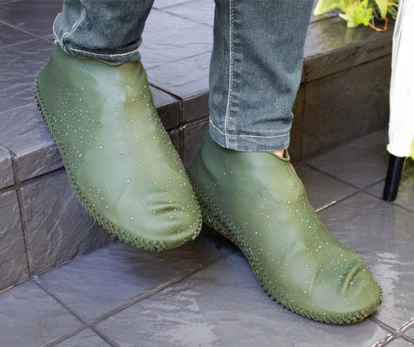 靴に被せるだけで、雨や泥汚れから靴を守る防水シューズカバーです。雨の日はもちろん、キャンプや野外イベントで靴の汚れが気になるときにも使えます。シンプルなデザインでビジネススーツの際でも目立たず使いやすいです。