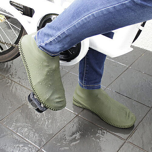 雨の中自転車に乗ると、傘をさしても、レインコートを着ても靴が濡れてしまいがちです。シューズカバーがあれば雨の日の自転車も靴を濡らすことなく安心して乗れます。