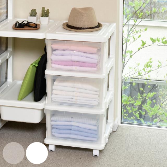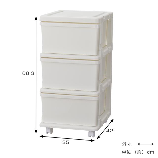 収納ケース シーズユニット 3段 組み立て式 連結できる キャスター付き ( 収納ボックス 幅35×奥行42×高さ68.3cm 引き出し プラスチック 衣類収納 日本製 連結可能 スリム 収納 衣装ケース 収納チェスト クローゼット 洗面所 )