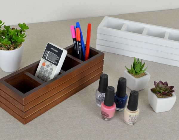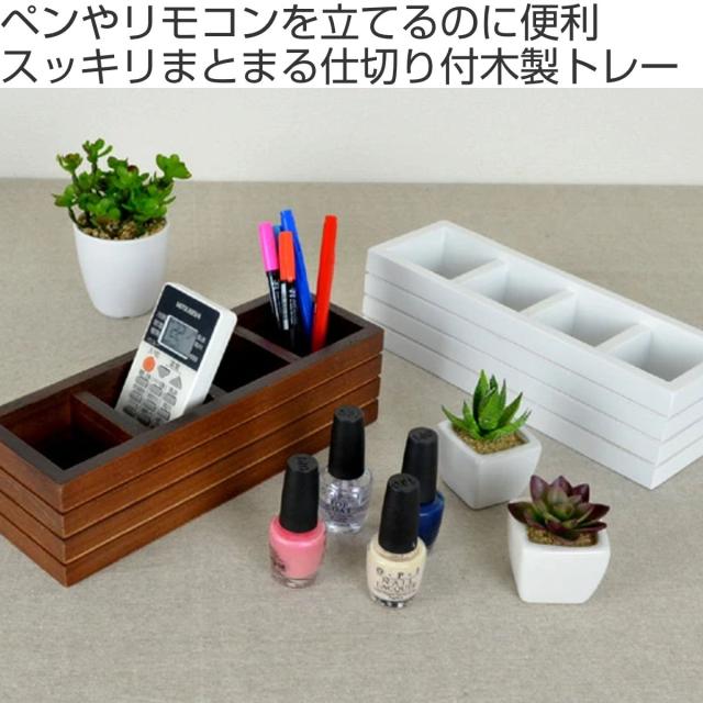 ペンやリモコンを立てるのに便利な仕切り付き木製トレー