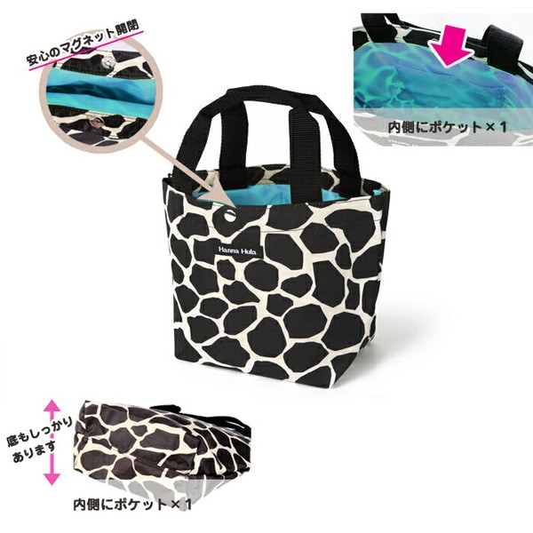 ミニトートバッグ Hanna Hula ハンナフラ 軽量 お散歩バッグ ( ランチバッグ ミニ バッグ トートバッグ ミニバッグ サブバッグ 弁当袋 お弁当袋 撥水加工 マチ付き ポケット付き 買い物 レディース )