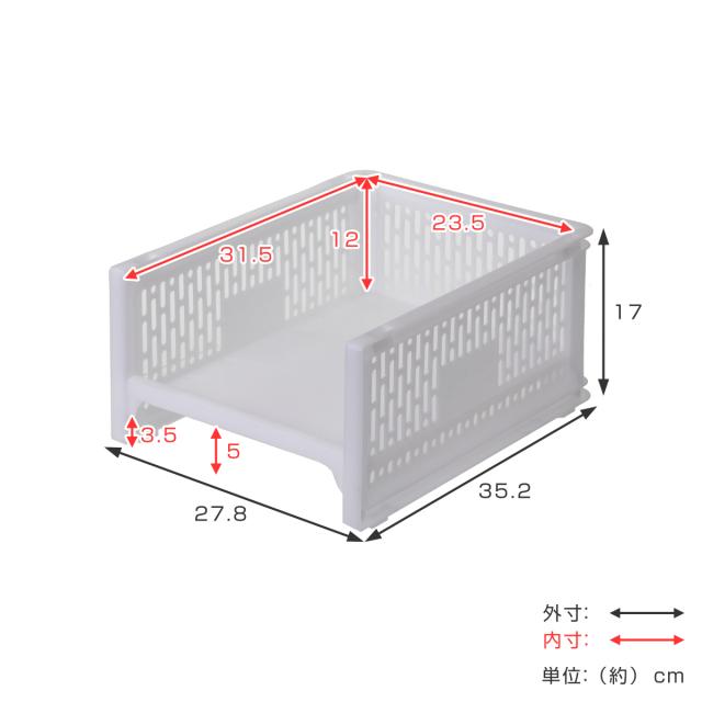 | サイズ | 外寸:約 幅27.8×奥行35.2×高さ17(cm) 内寸:約 幅23.5×奥行31.5×高さ12(cm) 脚の高さ:3.5cm |