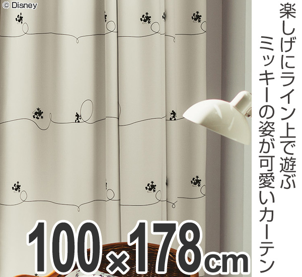カーテン 遮光カーテン スミノエ ミッキー ライン 100×178cm アイボリー ( ディズニー ドレープカーテン ミッキーマウス Disney キャラクター 既製 遮光2級 洗える ウォッシャブル 形状記憶 国産 )
