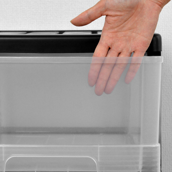 引き出しが透明タイプなので、何がどこにしまってあるか引き出しを開けなくても確認ができ、探す手間が省けます。