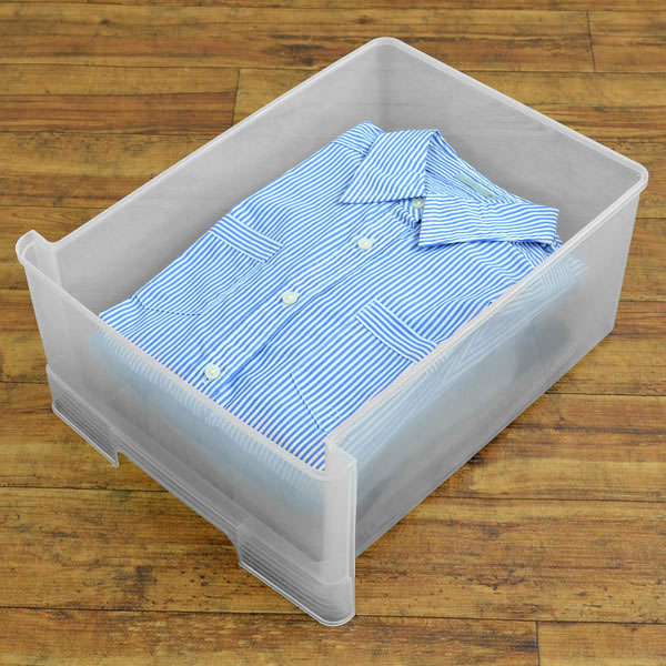 引き出しはシャツが余裕で収まるサイズで、深さも17.5cmあるので厚みのある洋服もたっぷり収納できます。また引き出しにはストッパーがなく、全て取り出せるので、衣替えやケースのお掃除の際に便利です。