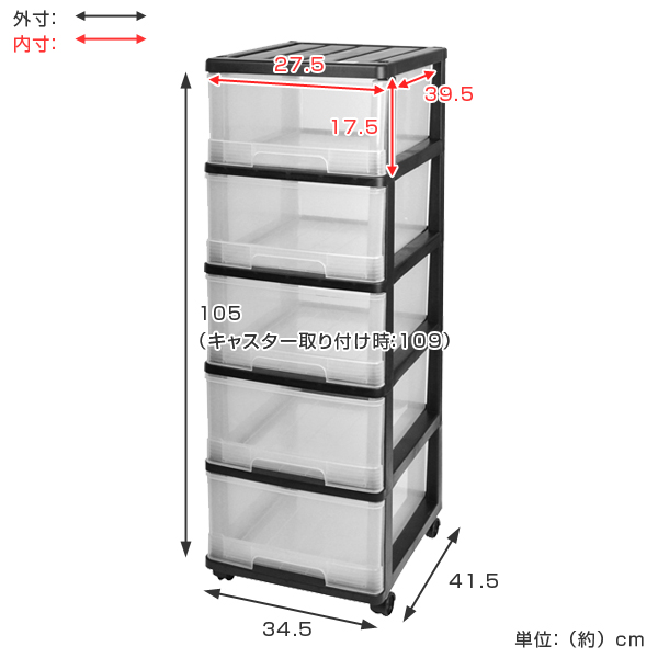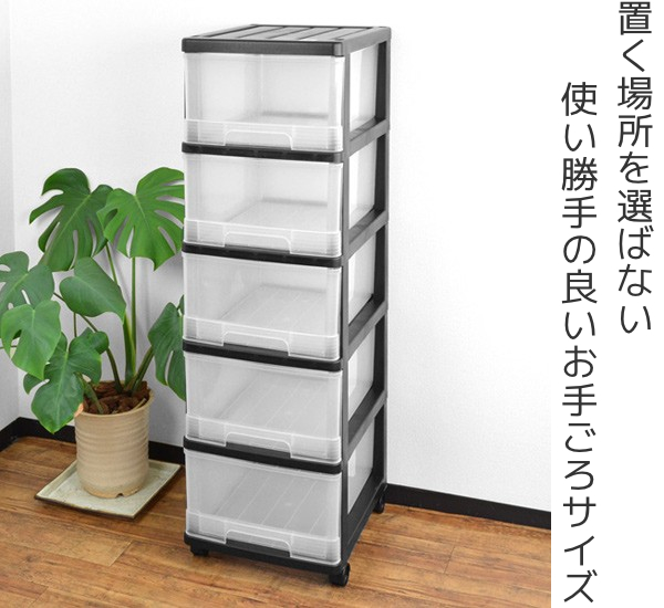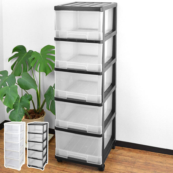 収納ケース 深型 5段 引き出し モノトーンカラー キャスター付き プラスチック製 ( 収納ボックス 衣装ケース 衣類収納 子供部屋 クローゼット収納 チェスト プラスチック 押入れ 収納 ケース スタッキング 押入れ収納 )