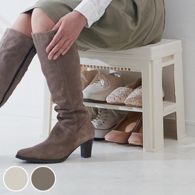 玄関ベンチ 幅45.5cm 収納棚付き ( 幅45 玄関 エントランスベンチ 踏み台 ステップ 下駄箱 シューズラック 靴 収納 スツール 椅子 イス 腰掛け スリッパラック ベンチ チェア 玄関チェア ブーツ 玄関イス 玄関椅子 くつ収納 クツ )