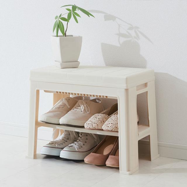 上下段で最大4足の靴を収納することができるのでシューズラック、スリッパラックとして活躍します。また、外出前の手荷物置きや、観葉植物を置くのにぴったりのサイズ感です。