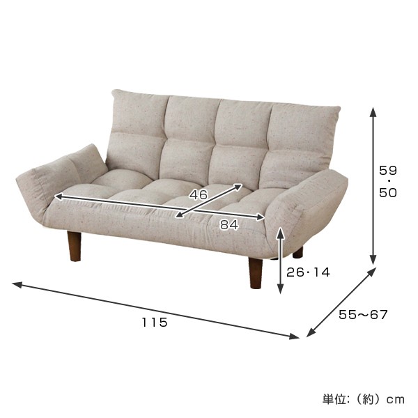 | サイズ | 約 幅115×奥行55〜67×高さ59/50(cm) 座面高さ26/14(cm) |
