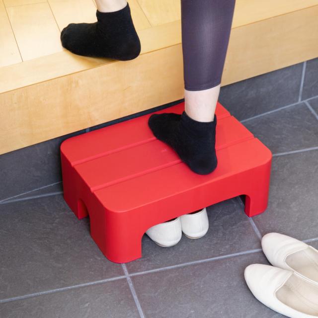 玄関の上がり框や縁側の段差に置いて、小さなお子さまや年配の方の昇降のサポートにもおすすめです。ステップ下は、サッと出し入れできるシューズ収納として活用できます。