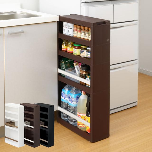 隙間収納 ストランティ ラックC 4段 17cm プラスチック製 コロ付き 完成品 ( キッチン 収納 すき間収納 ラック 隙間 キッチン収納 幅17cm 収納ストッカー キッチン収納 キッチン すきま収納)