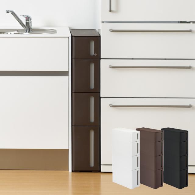 隙間収納 ストランティ ドロアーA 4段 17cm プラスチック製 コロ付き 完成品 ( キッチン 収納 すき間収納 引き出し 隙間 キッチン収納 引出し 幅17cm 収納ストッカー キッチン収納 キッチン すきま収納)