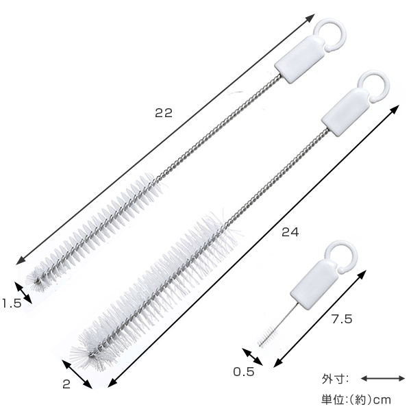 やかん、急須、調味料入れの注ぎ口洗いに便利なブラシ3本入り