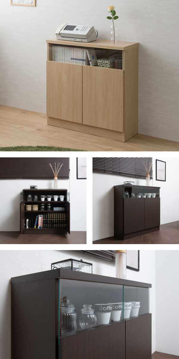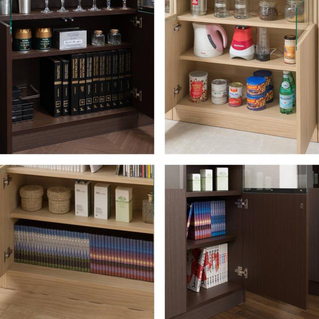 扉上面に接続されたガラス扉には、お気に入りの食器やグラス、雑貨などをディスプレイすることができます。