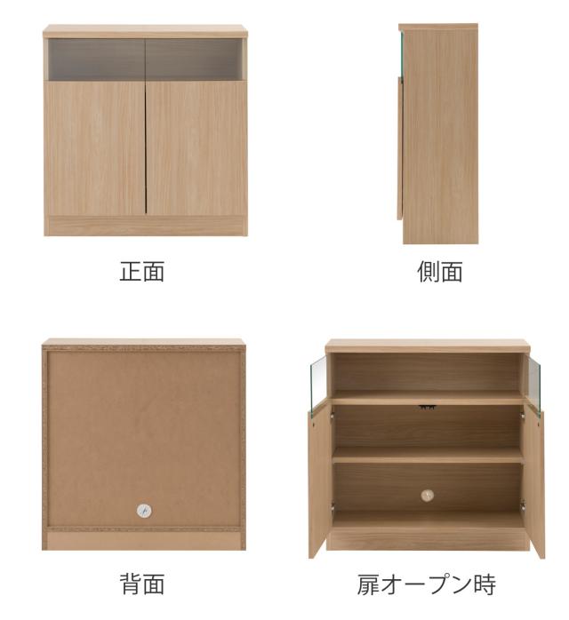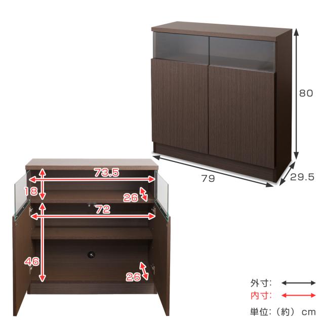 カウンター下収納 幅79cm 2枚扉 リビングキャビネット サイドボード ( キャビネット リビング収納 キッチン収納 収納棚 食器棚 日本製 完成品 薄型 スリム 国産 本棚 ディスプレイ 扉付 ブラウン ナチュラル おしゃれ )