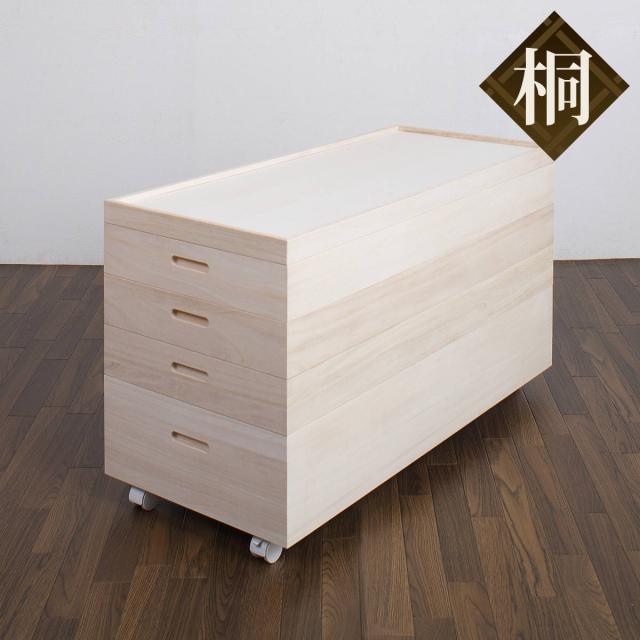 桐 衣装ケース 4段 キャスター付 日本製 高さ55cm ( 完成品 桐衣装箱 天然木 木製 衣類収納 着物収納 収納 キャスター 蓋つき フタ付き 四段 ケース ボックス 収納ケース 着物 衣類 着物用 )