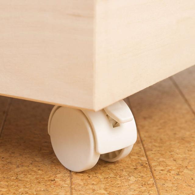 ストッパー付きのキャスターがついているので、ラクに移動させることができます。クローゼット中のでの移動など様々な用途で使用できます。