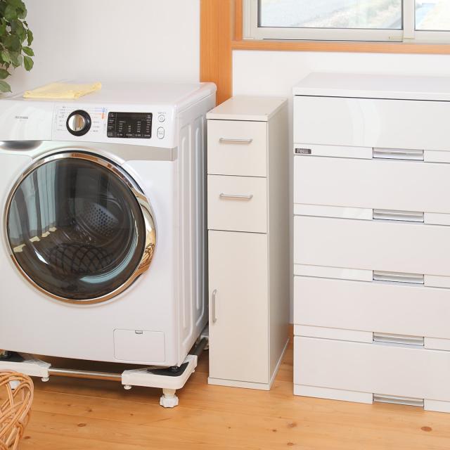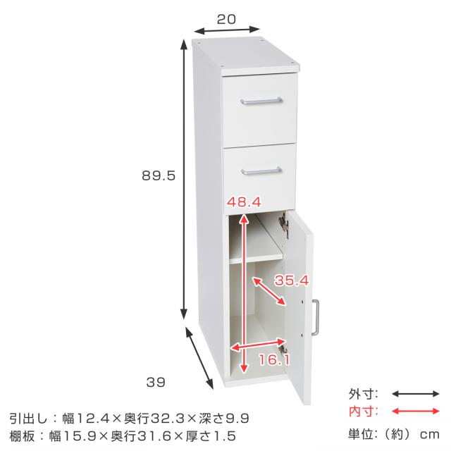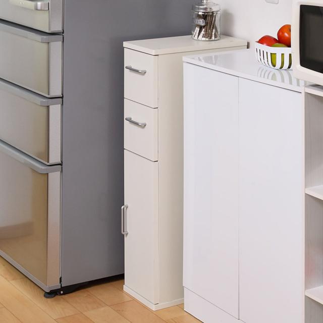 キッチン収納 すき間収納 スリムチェスト 引出し 2段 木扉 幅20cm ( 収納 棚 すき間 家具 スリムラック ストッカー 引き出し 可動棚 隙間 キッチン ランドリー ホワイト シンプル 食器棚 スリム)