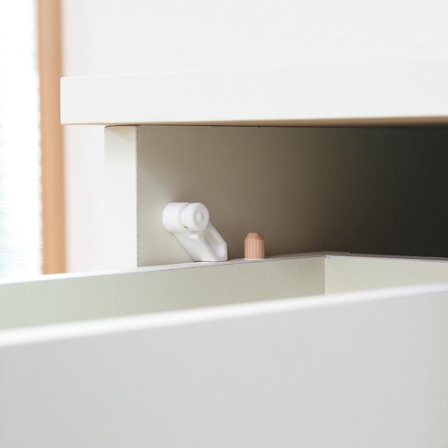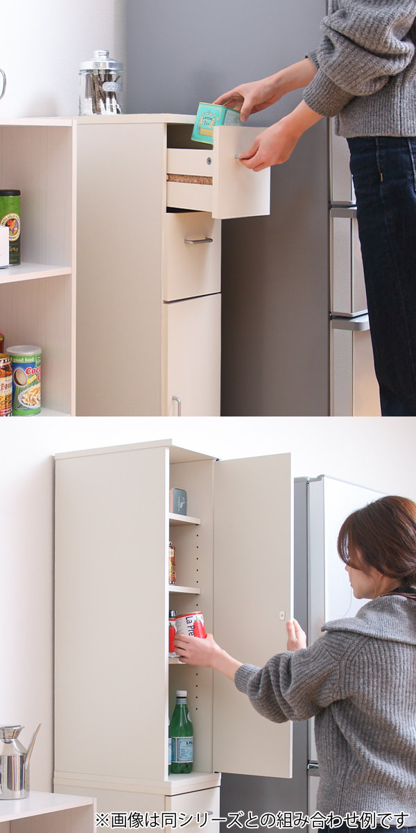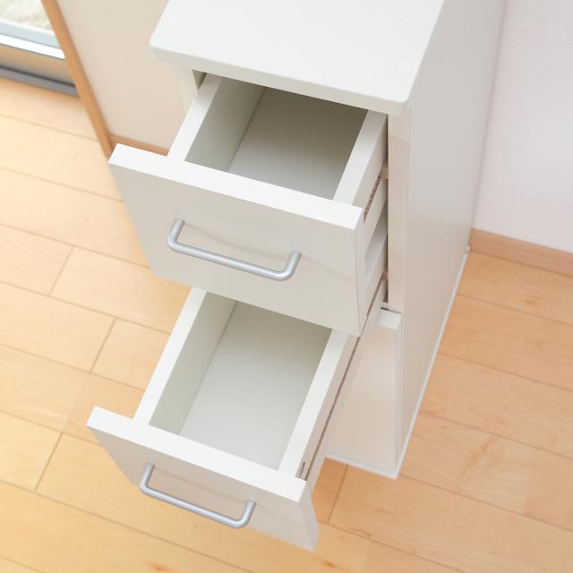 引出し収納が2杯設けられており、よく使う小物の収納に便利です。キッチンではカトラリーや調理用品の収納、洗面所ではタオル類や下着の収納にもお使いいただけます。