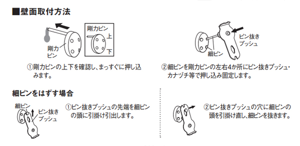●細いピンで留めるので、跡が小さく、壁を傷めません。