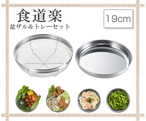 ザル&トレー2点セット 19cm 食道楽 盆ザル&トレーセット ステンレス製 日本製 ( 浅型ザル 盛り付け道具 盛り付け皿 盆ザル&トレー 調理小道具 盛り付け キッチン用品 下ごしらえ用品 調理用品 キッチンざる キッチンツール )