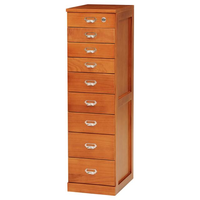 チェスト 9段 カギ付き 多段チェスト 桐製 幅28cm ( 完成品 書類収納 レターケース 木製 桐 桐チェスト 引き出し 整理タンス ハイチェスト 九段 隠しキャスター付 サイドボード リビングボード 引き出し収納 収納棚 )
