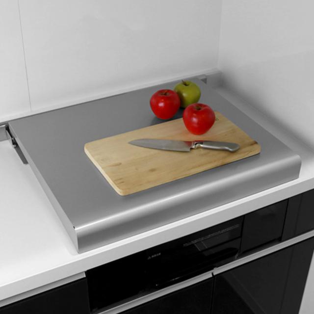 ガスコンロ上にカバーをする事で作業スペースが増え、料理の準備がスムーズにできます。しっかりした作りなので包丁を使った作業も安定して行えます。