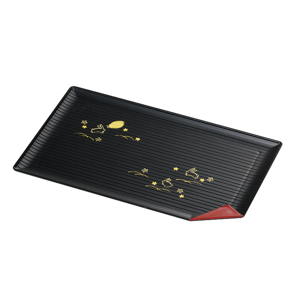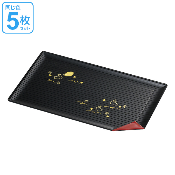 長角盆 トレー 夢うさぎ 漆器 プレート 皿 食器 日本製 同色5枚セット ( トレイ お盆 和菓子 和食器 菓子皿 和風 プラスチック 山中塗 角型 )