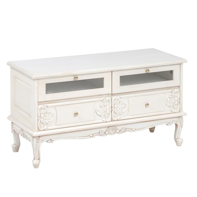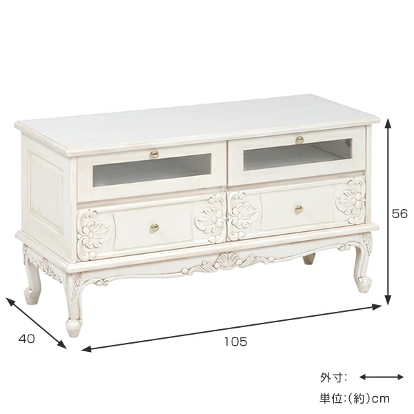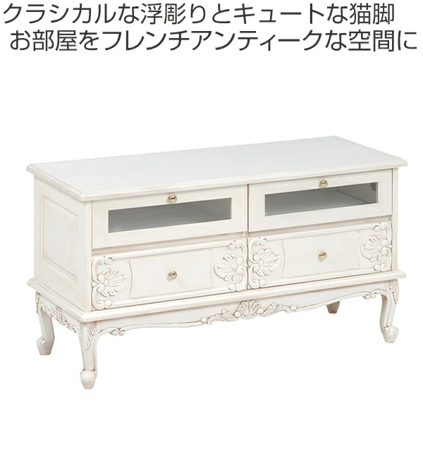 テレビ台 幅105cm リビングボード ヴィオレッタ ( テレビボード ローボード TV台 AVボード TVラック テレビラック AV収納 木製 猫脚 ネコ脚 ホワイト 白 白家具 幅105 アンティーク調 姫系家具 姫系 )