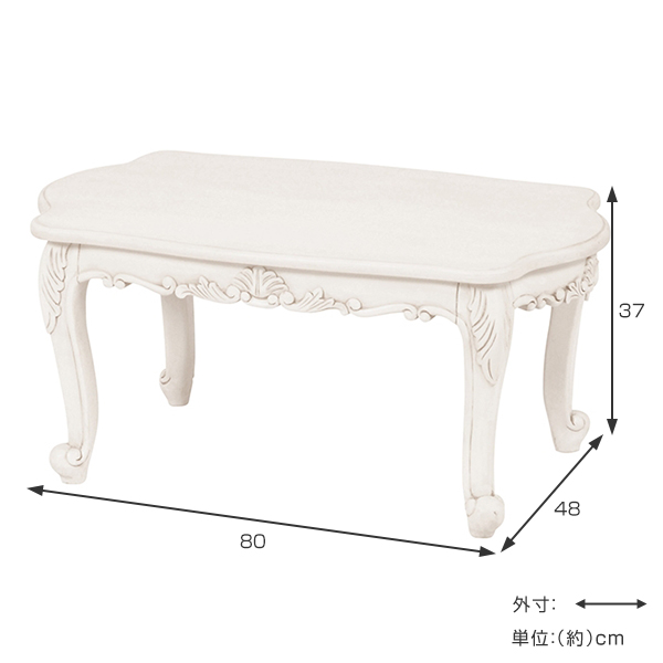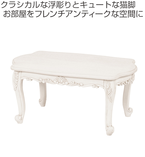 ローテーブル 姫系 ヴィオレッタ 幅80cm ( センターテーブル リビングテーブル 机 コーヒーテーブル 猫脚 ネコ足 ネコ脚 ホワイト 白 白家具 アンティーク アンティーク調 姫系家具 ロココ 大人かわいい 可愛い )