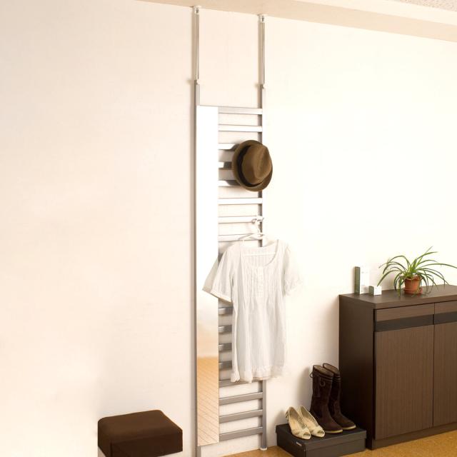 | サイズ | 本体:約 幅40(上部突っ張り部41.5cm)×奥行4×高さ202〜260(cm) ミラー部:約 幅12×高さ174(cm) フック出幅:約 7cm |