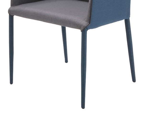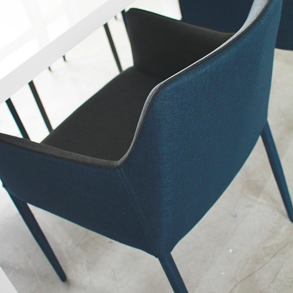 スチールフレームをシートと同じファブリックで脚部まで包み込んだあたたかみあるデザインのダイニングチェアです。落ち着いた色合いのツートンカラーがさりげないアクセントになります。シンプルなデザインですので様々なインテリアに幅広く合わせていただけます。