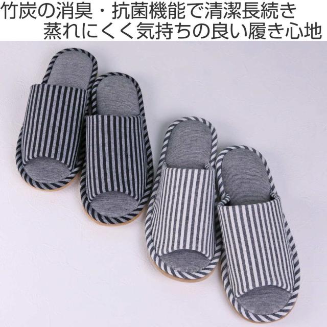 スリッパ monochrome 清潔竹炭外縫い Mサイズ ( ルームシューズ ルームスリッパ レディース 抗菌 防臭 自宅 室内 室内履き 部屋履き おしゃれ 女性用 夏用 前開き 前あき 素足 蒸れにくい 消臭 滑り止め 静音 オフィス 来客用 )