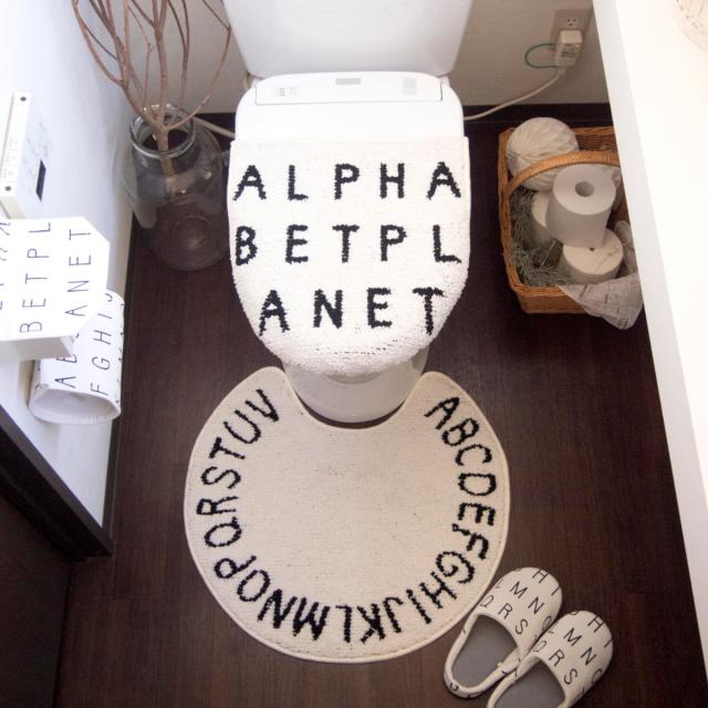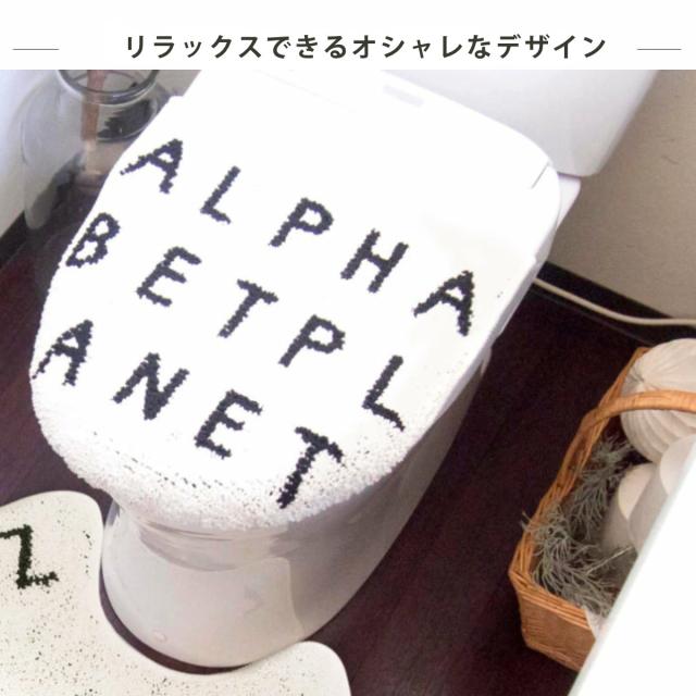 モノトーンの落ち着いた色味と手書き風の英字フォントのデザインが目を引くフタカバーです。オシャレなのに主張しすぎない柄なので、インテリアに馴染みます。なんだか落ち着くやさしいデザインです。