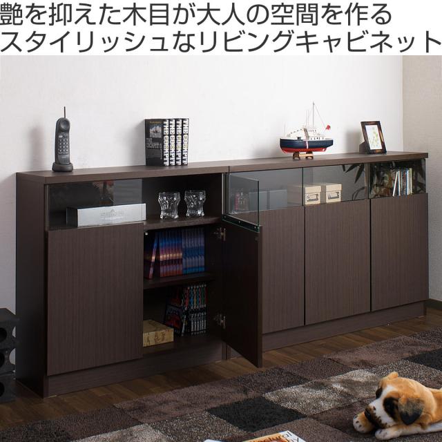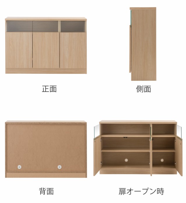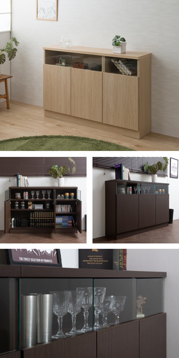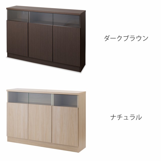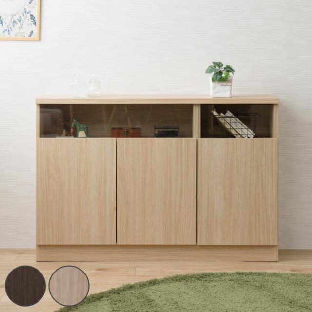 カウンター下収納 幅118.5cm 3枚扉 リビングキャビネット サイドボード ( キャビネット リビング収納 キッチン収納 収納棚 食器棚 日本製 完成品 薄型 スリム 国産 本棚 ディスプレイ 扉付 ブラウン ナチュラル おしゃれ )