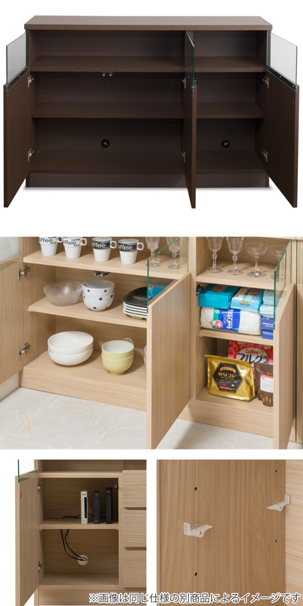 | 配線に便利なコード穴付き 下段背面にはコード穴を設けており、モデム等も設置していただけます。 | マグネット式の扉 扉は開閉がスムーズなマグネット式です。手掛けをなくし、すっきりとしたデザインです。 |