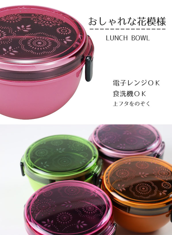 スケルトンカラーに花模様がかわいいどんぶり型お弁当箱