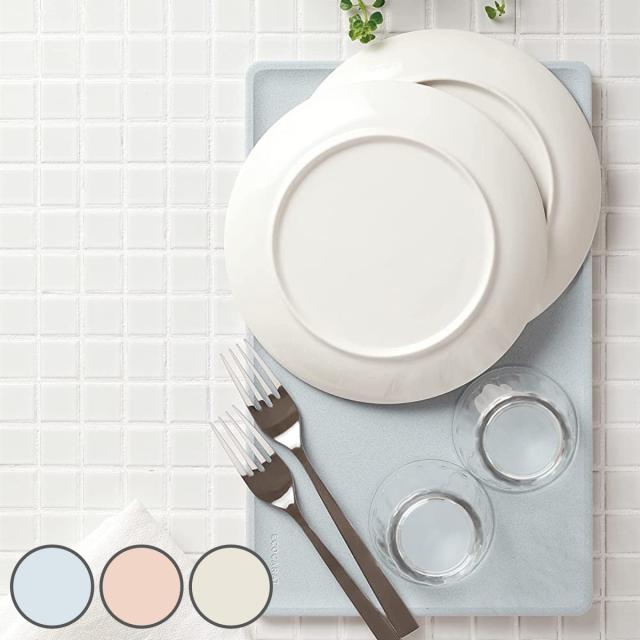 洗った後の食器の水滴を素早く吸収するので、カラッと快適に保つことの出来る水切りトレーです。