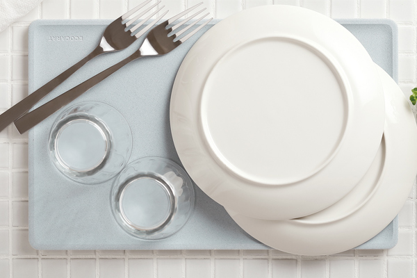 ECOCARAT(エコカラット)は、LIXILが開発した「多孔質セラミックス」という 素材です。珪藻土の約5倍の吸・放湿量、同等以上の吸水スピードがあり、カラッと快適に食器を乾かします。